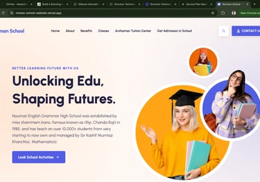 Build trust and showcase your school online with a clean, mobile-friendly, and informative static website featuring admission details, galleries, contact forms, and announcements.